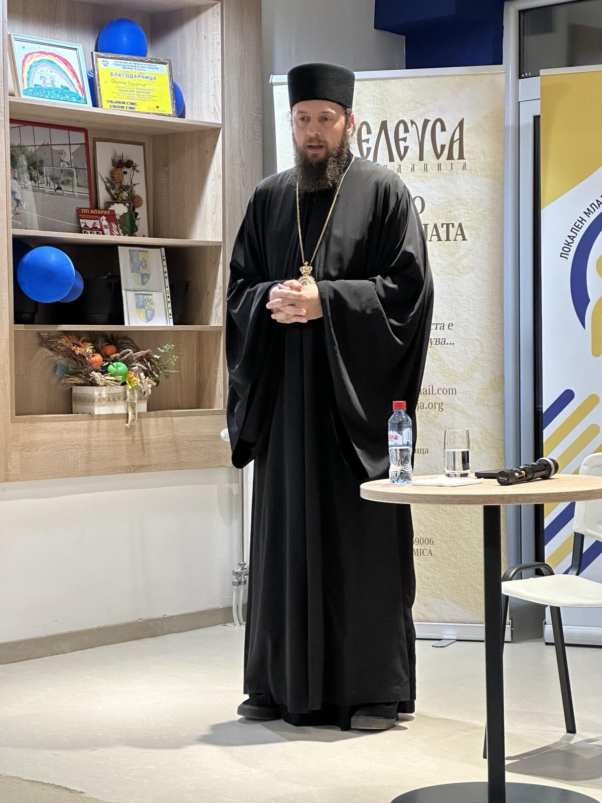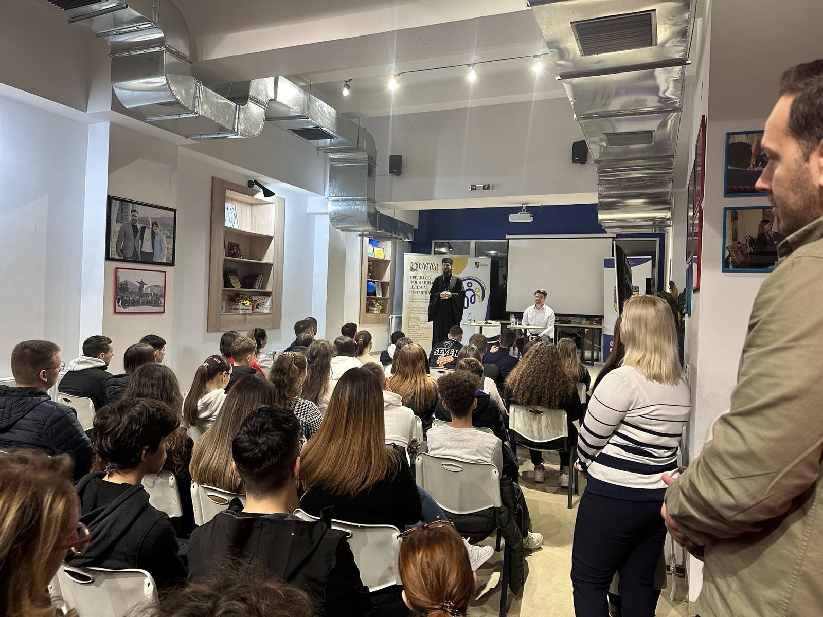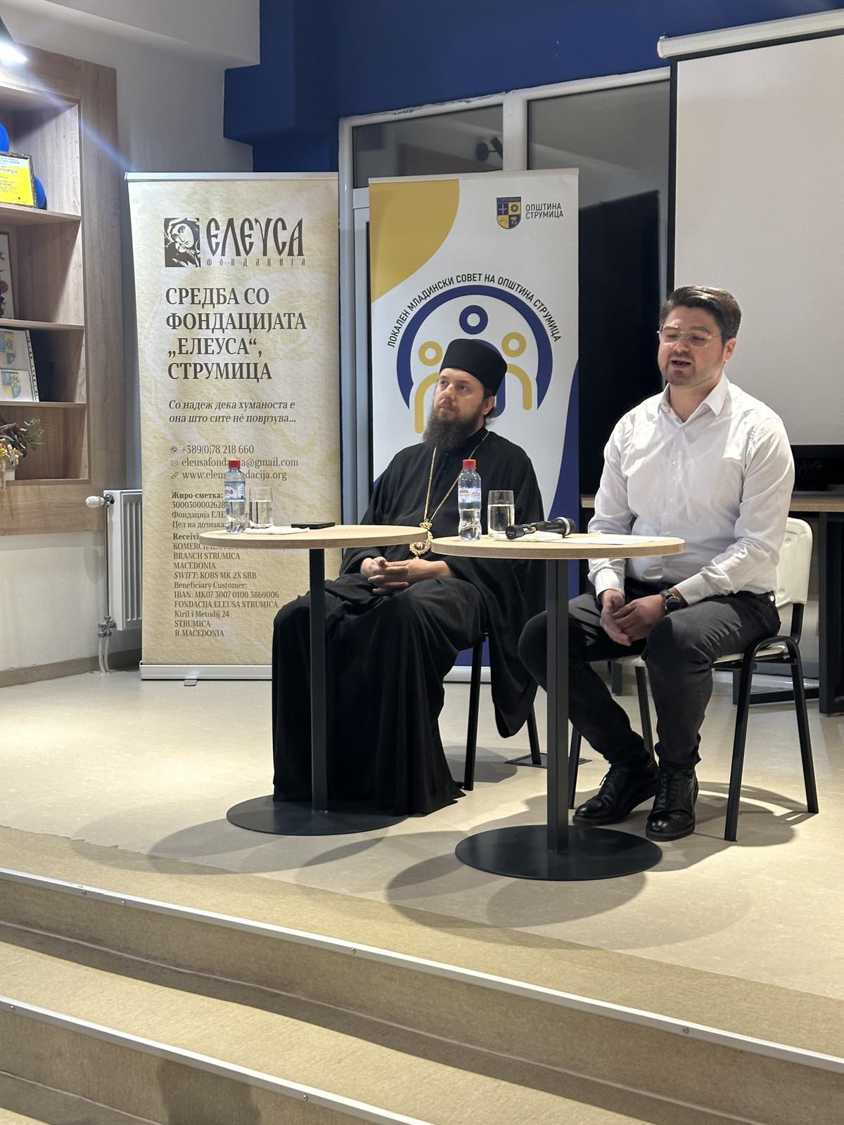 На барање на младите, Фондација Елеуса организира средба за неформален разговор за предизвиците, слободата и одговорноста на современото општество, на која говорници беа викарниот Епископ Стобиски г. Јаков и спец. д-р Петар Марков, абдоминален хирург.